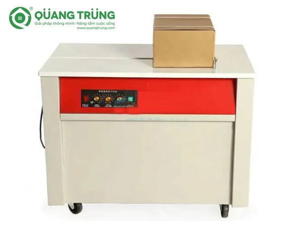 Thân máy được làm từ thép sơn tĩnh điện, mang lại độ bền và độ chắc chắn cao. Mặt bàn làm từ chất liệu inox với chiều cao mặt bàn 75 cm, tạo điều kiện thuận tiện cho việc đứng và thao tác đóng đai một cách tiện lợi.