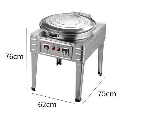 Bề Mặt Nướng Chống Dính: Mặt nướng của máy được đúc bằng gang nguyên khối có hình dạng hình tròn với đường kính 56cm, đúng theo tiêu chuẩn Châu Âu. Bề mặt nướng được phủ lớp chống dính, giúp bạn dễ dàng làm mịn bột và tránh bánh bị rách khi lấy ra.